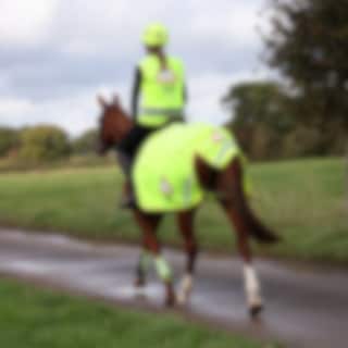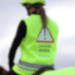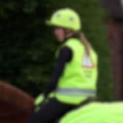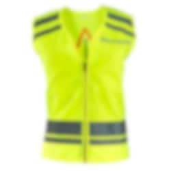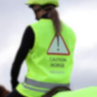 Tunn reflexväst som är lätt att använda utanpå de vanliga ridkläderna. Gul