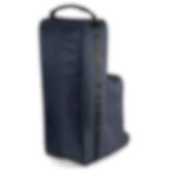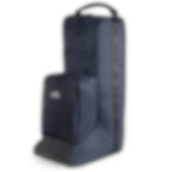 En stabil stövel väska tillverkad i slitstarka material som är enkel att hålla ren. Den hellånga dragkedjan på baksidan gör det smidigt att ta ur och lägga i stövlarna. Framtill finns en stor ficka, utrustad med en generös öppning och en praktisk dragkedja för enkel hantering. Stövelväskan för ridstövlar har ytterligare fack på framsidan för förvaring av sporrar, ridhandskar eller hästgodis. På vänster sida längsmed stövelväskan finns ett långsmalt fack där ditt ridspö kan förvaras.