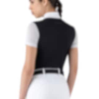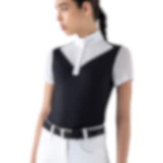 Designen på den här tävlingsskjortan är både elegant och svalkande, med vit, stretchig mesh på bröstet och ärmarna som ger en fräsch och luftig känsla. För en extra touch av lyx pryds tävlingsskjortan med Equilineloggan baktill i nacken och subtila glitterdetaljer framtill i en v-formation.