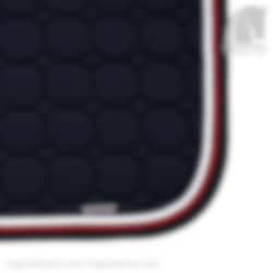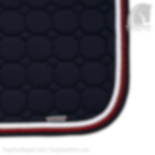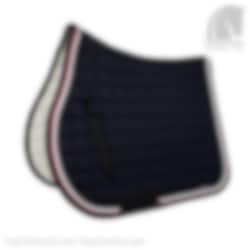 Octagon Hoppschabrak från Equiline - Marinblått med Marinblått Kantband, Röd Yttre Passpoal och Vit Inre Passpoal.
