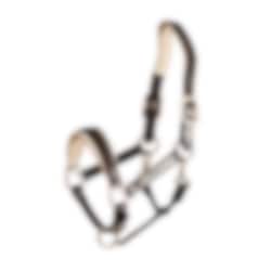 Finesse Bridles Lädergrimma i mjukt brunt läder med beige padding och mässingsfärgade spännen.