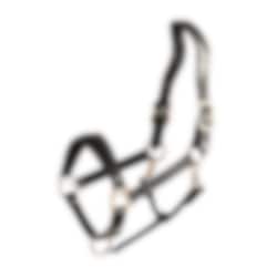 Finesse Bridles Lädergrimma i mjukt svart läder med svart padding och mässingsfärgade spännen.