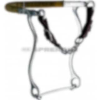 Sprengers hackamore med långa skänklar i rostfritt stål och kindkedja.