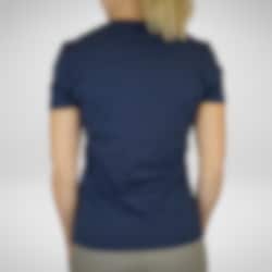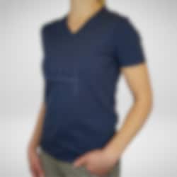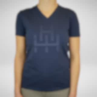 Vår eleganta v-ringade t-shirt tillverkad i ett otroligt skönt material och i en stilren design. Materialet är en blandning av ekologisk bomull och elastan som är mycket mjukt och bekvämt att bära mot kroppen. Denna t-shirt är i marin med Hogstas HHH-logga på bröstet och en liten Hogsta logo baktill i nacken. En perfekt t-shirt att använda både i stallet och till vardags!