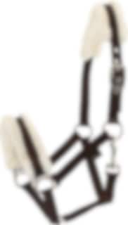 Brun textilgrimma från Horse Guard. Soft är en textilgrimma med mjuk fodring av imiterad lammull över nos och nacke.