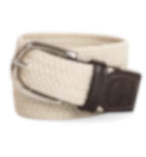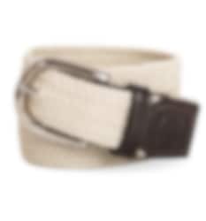Superfint flätat, elastiskt beige skärp med snygga läderdetaljer och snyggt spänne.