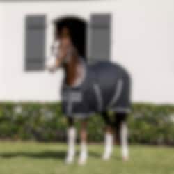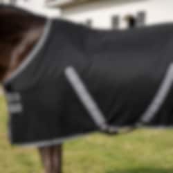 Den klassiska passformen med rak frontknäppning, justerbara kryssgjordar och svansrem ger en säker och stabil passform, idealisk för användning i stallet, i transporten eller efter träning.