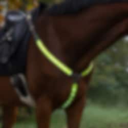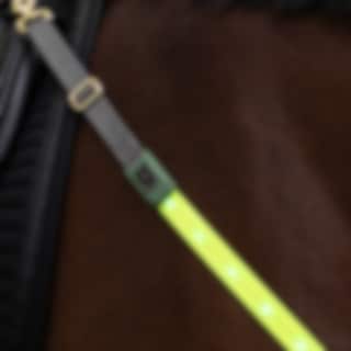 Detta reflekterande och lysande bröststycke är ett måste för alla som rider i mörker och vill öka säkerheten för både ryttare och häst.