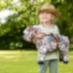 Montana är en vacker brun och vit leopardappaloosa med tvåfärgad man och svans. Hennes supermjuka päls är perfekt att borsta och pyssla med. Hon står stadigt på alla fyra ben och är flexibel, vilket gör henne trygg för små hästälskare att leka med.