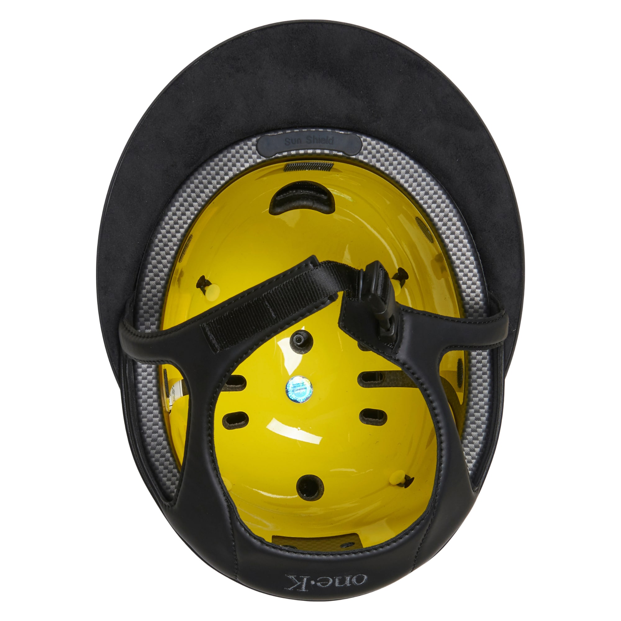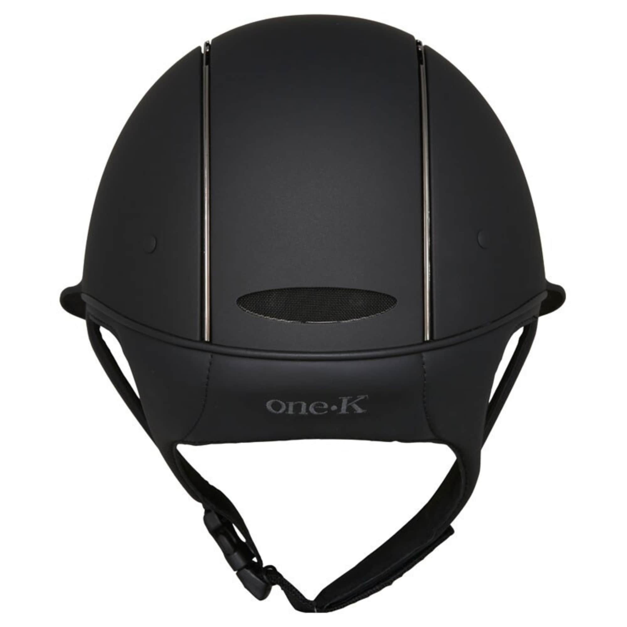 Denna OneK ridhjälm har en matt svart yta med diskreta chrome-detaljer som ger ett stilrent uttryck. Solskärmen ger ett effektivt skydd mot solljus och bidrar till hjälmens eleganta form.