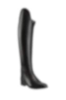Ridstöveln Dressage Classic finns enbart i svart och går att beställa i kalvskinn, borstat läder eller lackat läder med eller utan logo.