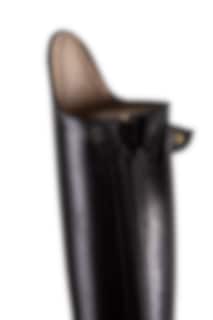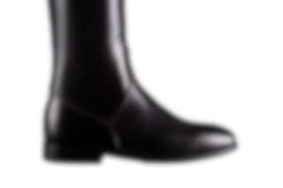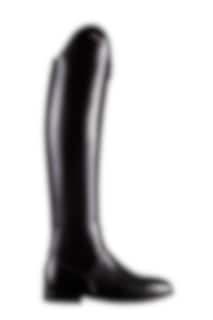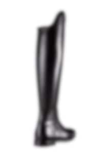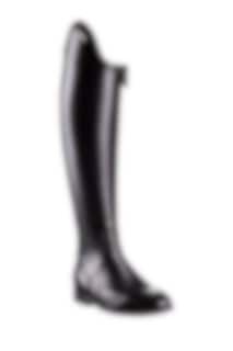 Ridstöveln Dressage Evo finns enbart i svart och går att beställa i kalvskinn, borstat läder eller lackat läder med eller utan logo.