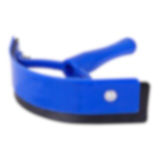 Den blåa svettskrapan har en böjd form som följer hästens kropp, vilket minimerar risken för obehag. Gummisidan är särskilt utformad för att vara skonsam mot huden samtidigt som den effektivt tar bort överflödigt vatten och smuts.
