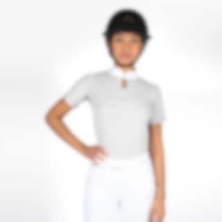 Elvira tröjan från Samshield är en perfekt tävlings- eller träningströja med kort ärm för sommarens varma dagar. Tävlingstoppen är gjord i ett mjukt funktionsmaterial med en smickrande passform. Elvira toppen har en unik design vid kragen som stängs med en krok, vilket ger den en extra elegant look. Tävlingsskjortan har fina detaljer framtill och meshdetaljer nedtill på ryggen samt i sidan under armarna för bästa komfort under de varma dagarna.