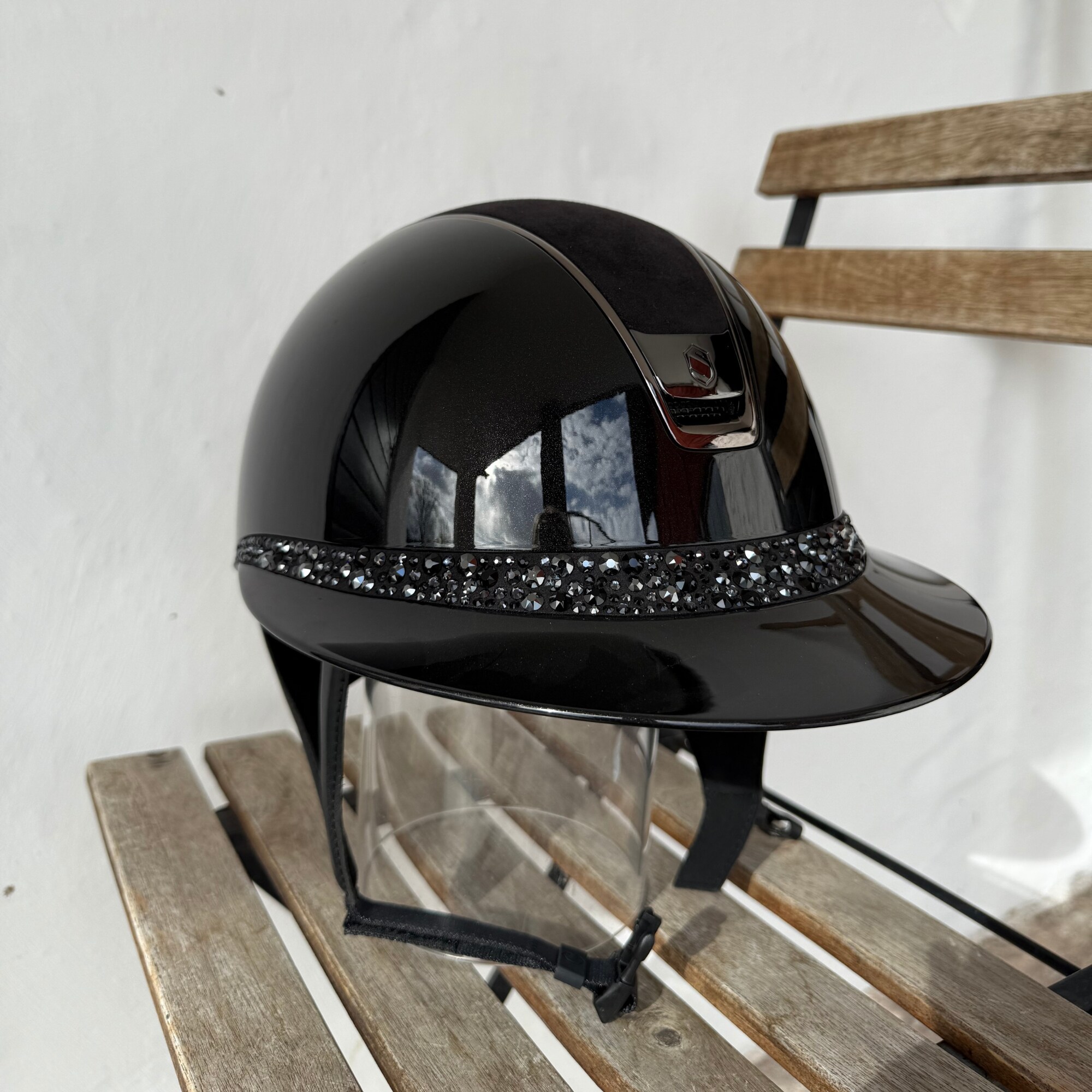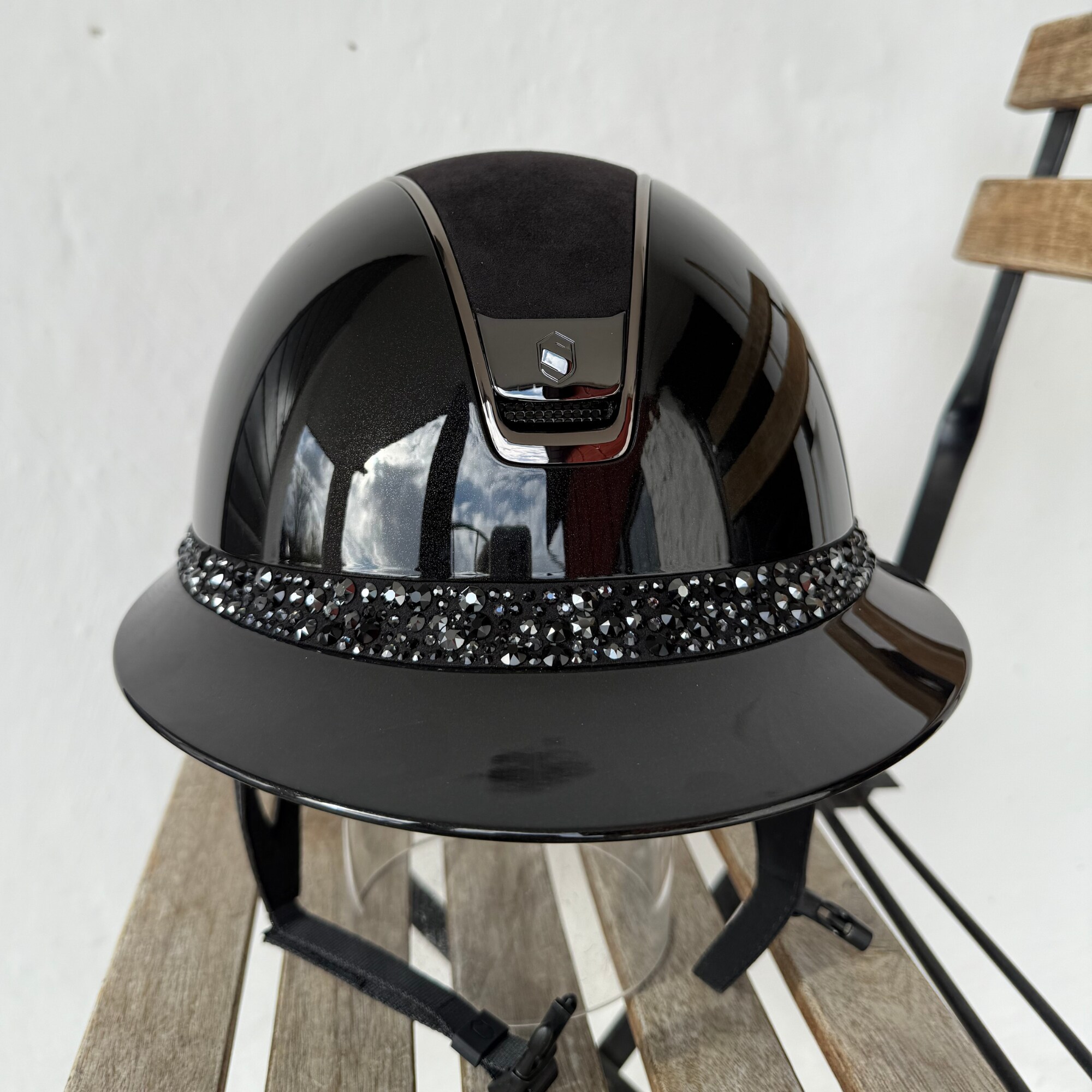 Vacker ridhjälm Miss Shield 2.0 med solskärm från Samshield, elegant designad i glansigt utförande med Alcantara top och Glacier front!