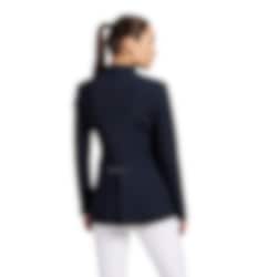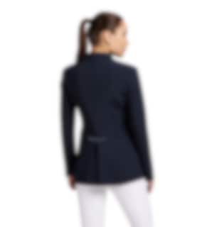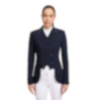 Short Frac Premium är en mycket elegant halvfrack med en utmärkt passform och stiliga detaljer. Denna tävlingskavaj är verkligen iögonfallande med sina fantastiska inslag av "Ultra Fine Rock" Swarovski-detaljer på krage och baktill. På höger ärm finns en vacker Samshield-logotyp i Swarovskikristaller, och snibbarna är dekorerade med ytterliggare Swarovskikristaller.