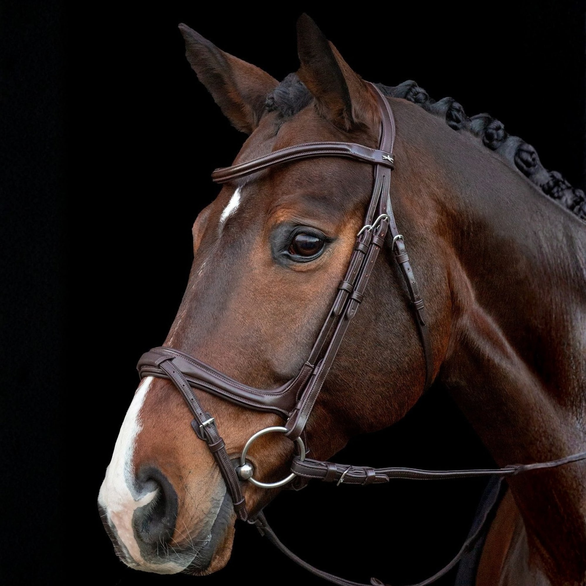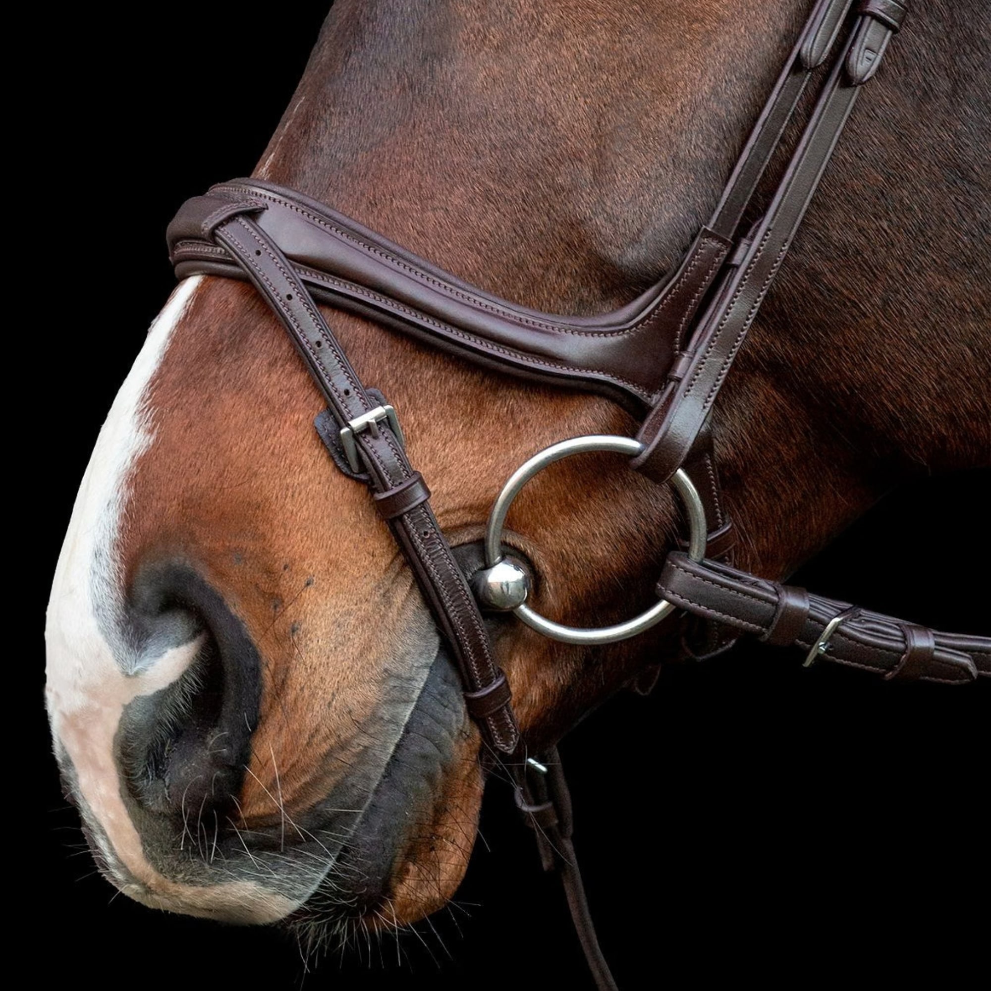 Ancona Select är ett anatomiskt träns med en engelsk kombinerad nosgrimma som är formad för att följa kindbenets konturer. Detta gör att nosgrimman ligger jämnt och bekvämt utan att trycka mot känsliga områden. Sidoringarna bidrar samtidigt till att den bakre stängningen ligger stabilt och följsamt mot hästens huvud.