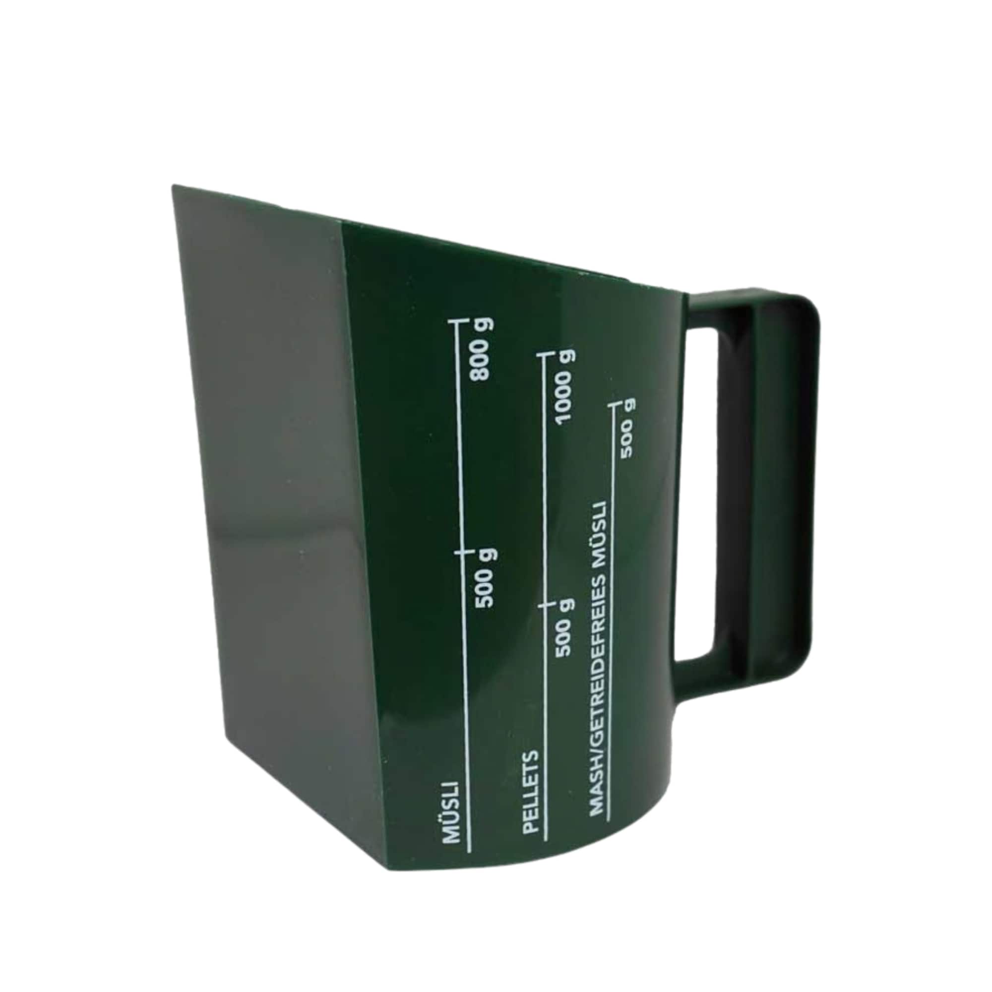 Foderskopa från St. Hippolyt.En praktisk grön foderskopa som gör det lätt att mäta upp rätt mängd tillskottsfoder till din häst.Skopan rymmer lite olika beroende på typ av foder:- ca 800g müsli- ca 1kg pellets- ca 500g mash.