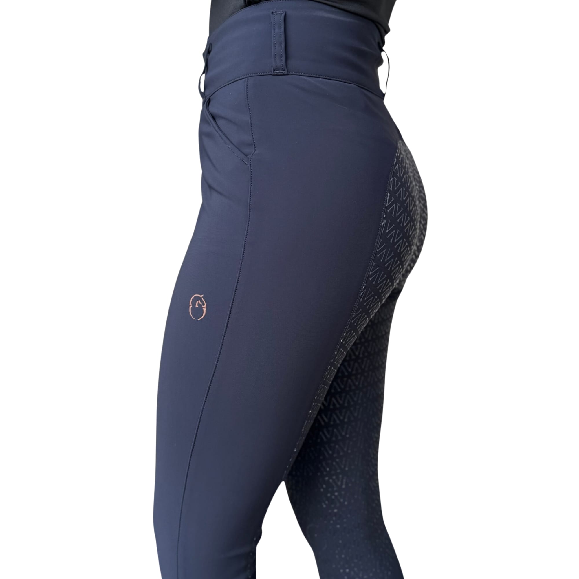 Vestrum Molveno är en elegant ridbyxa med hög midja och signatur full grip. Teknisk stretch och italiensk design ger en exakt passform och komfort i sadeln.