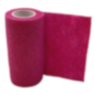 Rosa snabbandage eller Vetrap som är ett självhäftande elastiskt bandage. Fäster av den värme som genereras vid pålindning.
