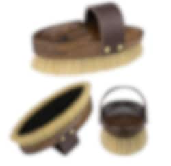 Hästborsten är gjord av 100% rent hästhår och har en anatomisk form som är något välvd. Denna design gör det lättare att borsta utan att bli trött i handen.