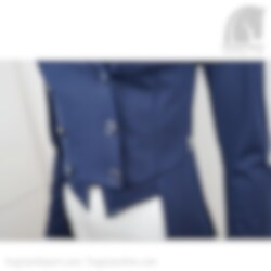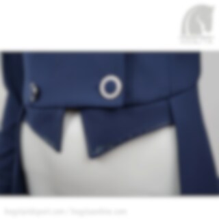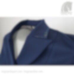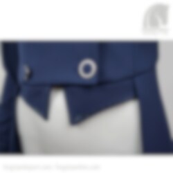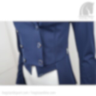 Kavajen för ryttare stängs med en dragkedja och snygga knappar i marin/silver, samt snygga glittriga stenar på krage och snibbar.