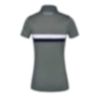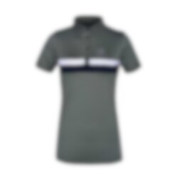 Denna ridpiké är gjord i funktionsmaterial som är snabbtorkande och har god andningsförmåga. Pikén har ränder i kontrasterande färger på bröstet. Framtill har pikén knappar fram och en broderad logotyp återfinns på bröstet och i mitten av kragen baktill.