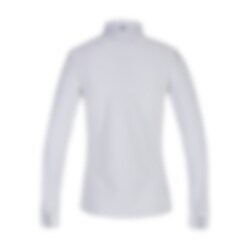 Denna tävlingsridskjorta för ungdom är otroligt elegant med ett mjukt och stretchigt material samt fantastiska detaljer i silver. Kragen försluts med en fin knapp samt fyra dolda knappar. Tävlingsskjortan har en Kingsland logotyp i silver på bröstet samt vid ena armslutet som också stängs med två knappar.
