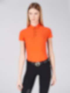 New Orleans är en superlätt och stretchig piké med kort ärm i en superhärlig orange färg. Ridpikén har en elegant krage, fyra svarta knappar och Vestrum i text längs knappraden. Denna piké har svarta paneler i sidan med små hål i för ventilation och bästa komfort. Ridtröjan har även en Vestrum logotyp på den vänstra ärmen.
