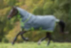 Detta är ett mycket slitstark och hållbart täcke från Horseware med yttermaterial i 900 Denier framtaget för att klara av hård väderlek och att hästar går ute i grupp. Yttermaterialet är vattentätt samtidigt som det andas väl, innerfodret är blankt för att förhindra skav. Amigo Hero har en vattentät yta med 3000 mm vattenpelare, samt en andningsbar yttersida i polyester. Täcket är försedd med Amigos nya DISC- front för optimal passform samt en stor svanslapp som står emot vind och regn vid dåligt väder.