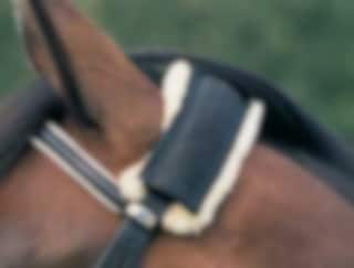 Kompletterande nackskydd i fårskinn som minskar risken för tryck och skav på hästens nacke.