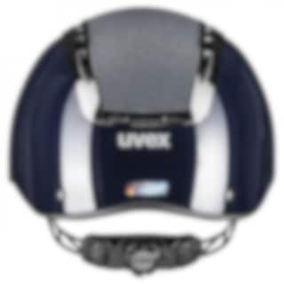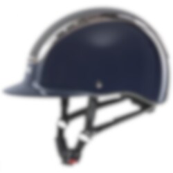 Ridhjälmen Suxxeed Blaze från Uvex är en verkligt elegant marinblå ridhjälm med en härlig glossy yta och glitter top.