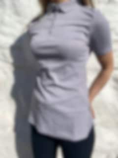 Ridtröjan Dasha är en piké med Pikeur tryckt på vänster sida av bröstet, ridpikén är något längre med två slits på sidorna vilket gör den riktigt skön att rida med.