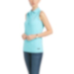 Denna Prix ärmlösa polo från Ariat är en figursydd modell,snäppet längre än en klassisk piké för att lätt kunna ha istoppad i ridbyxorna.