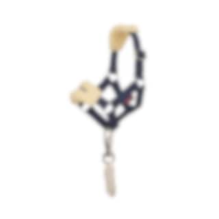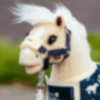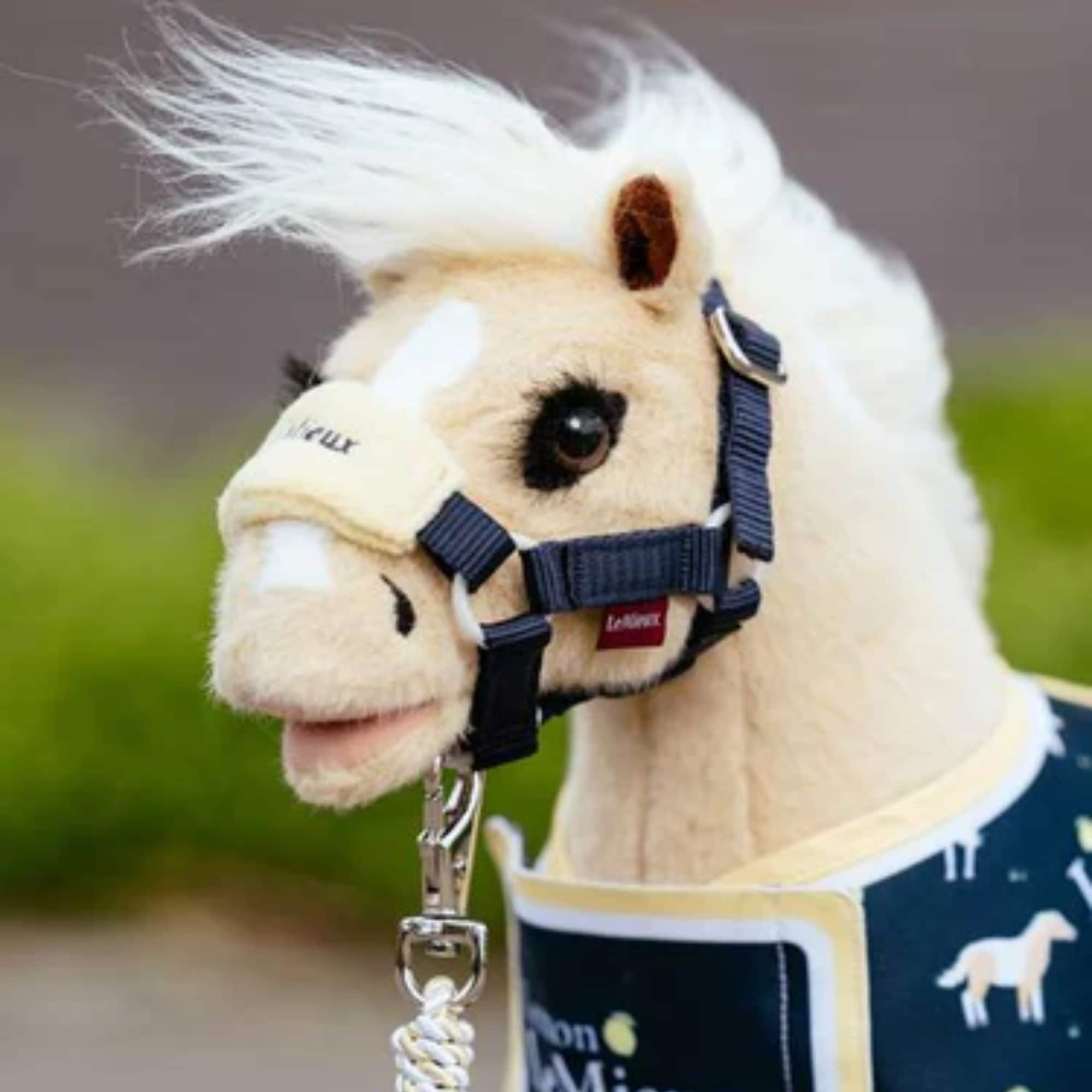 En miniatyrversion av LeMieux ikoniska Vogue-grimma, designad med samma omsorg och känsla för detaljer som originalet. Grimman är ljust-fleecefodrad över nos och nacke, med LeMieuxs broderade logotyp, justerbar rem och ett matchande grimskaft.