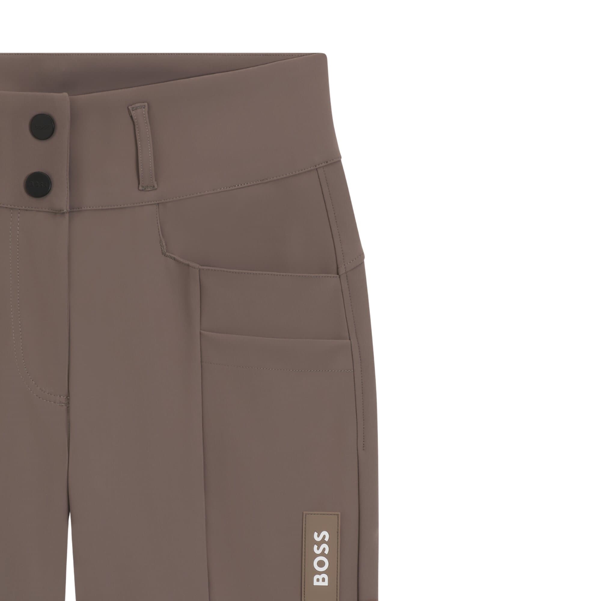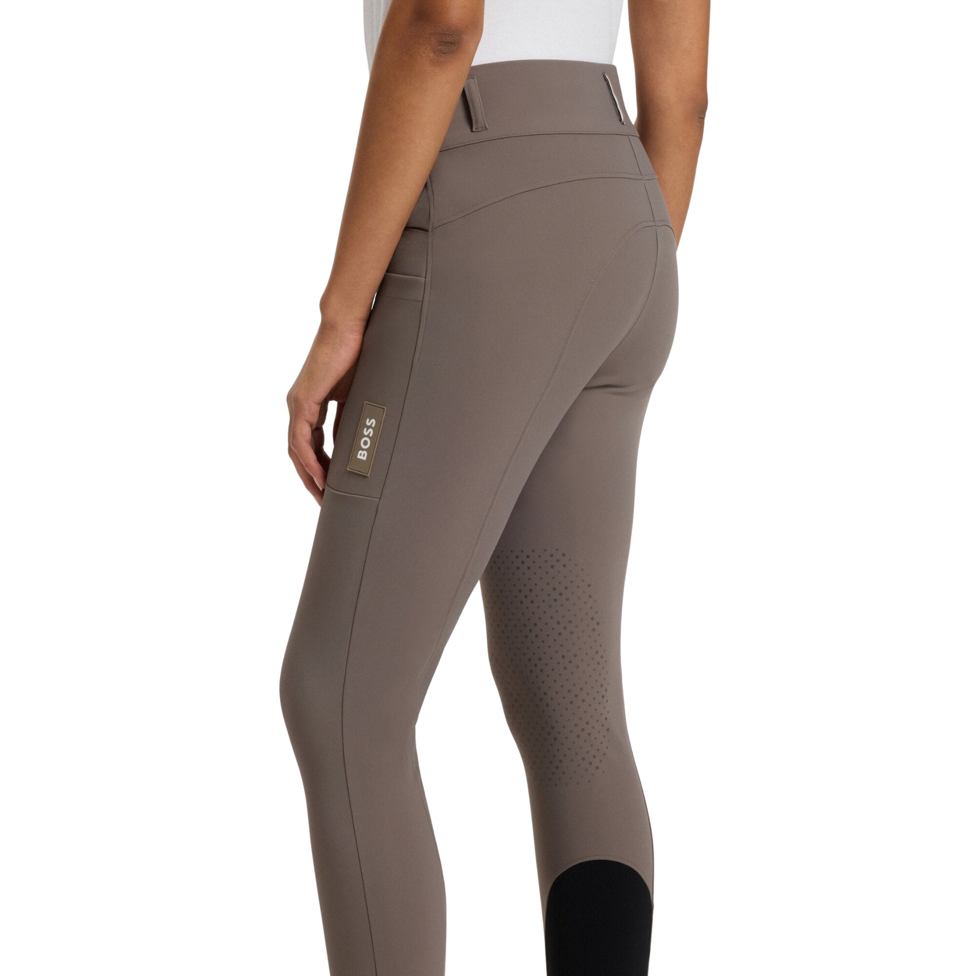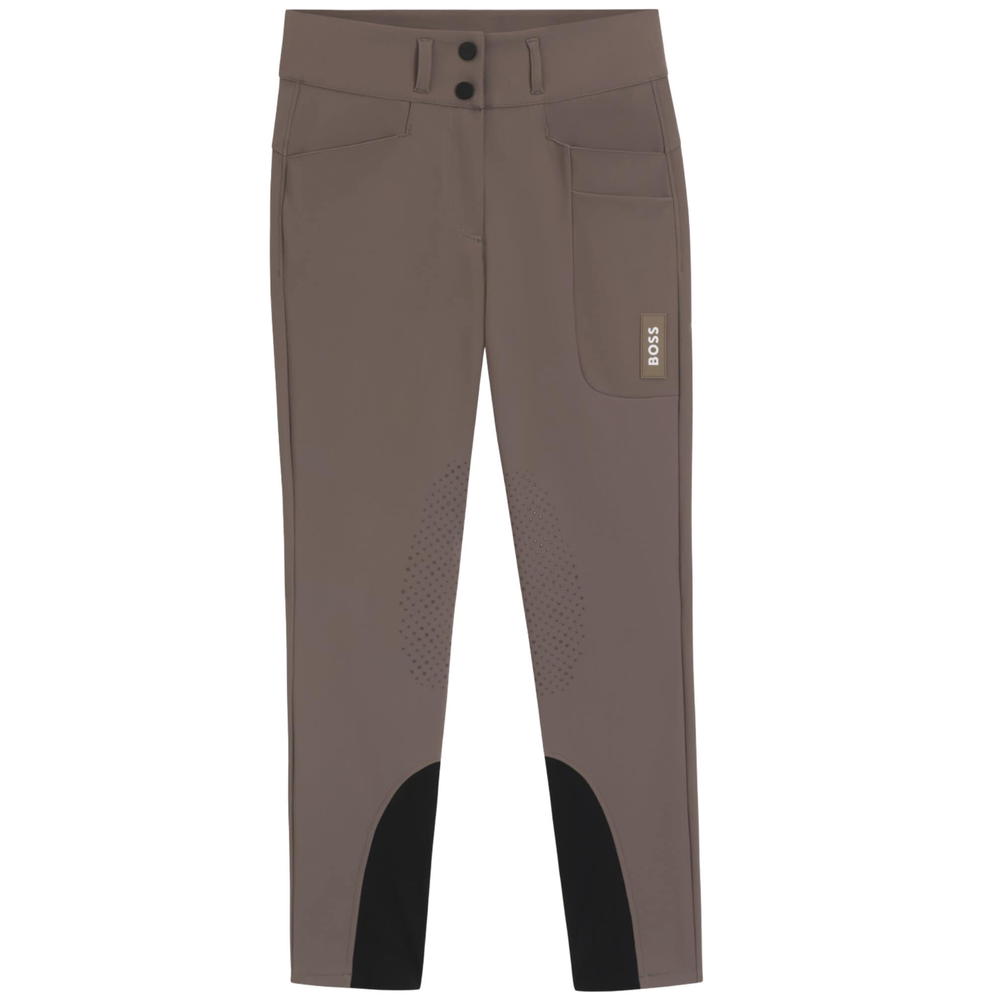 Hannah ridbyxa från Boss Equestrian är en modern och högpresterande ridbyxa med hög midja, en subtil BOSS-logotyp på vänster ben och en praktisk mobildficka. Ridbyxorn är tillverkade i ultralätt, super-stretchmaterial med ergonomiskt knägrepp i silikonoch material som andas, är snabbtorkande, noppfritt och lätt att rengöra. Dessutom har de solskyddsfaktor 50 för extra skydd under utomhusaktiviteter.