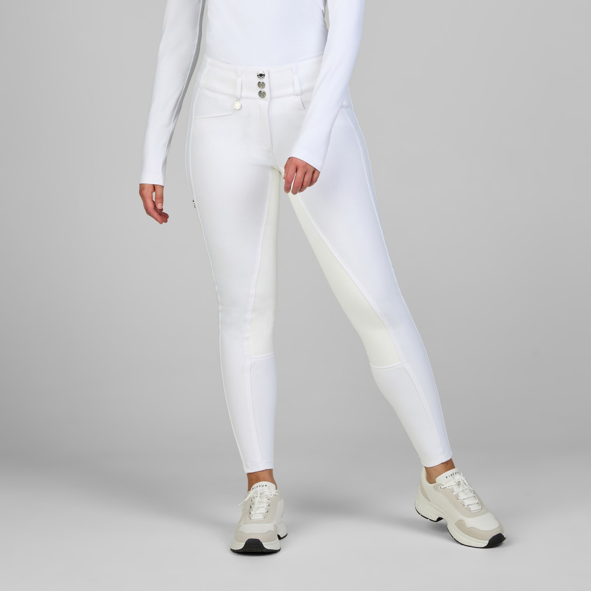 New Candela från Pikeur är en elegant ridbyxa med hög midja och bred linning med tre knappar som ger både stöd och stil. Modellen är tillverkad i det tekniska Pro Performance-materialet med 4-vägsstretch, vilket ger en följsam känsla och stöd i sadeln.