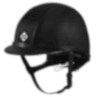 Ayr8 Plus Leatherlook Ridhjälm från Charles Owen är en lågprofilshjälm med konstläder på sidopanelerna och nät i mitten av ridhjälmen.