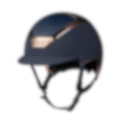 Dogma är en ridhjälm i klassiskt utförande som kombinerar säkerhet och unika tekniska funktioner med elegans och hög komfort. Ridhjälmens matta yta i marin kombinerad med en frame i roséguld ger en riktigt snygg och lyxig design.