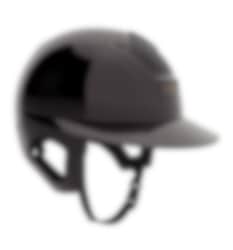 Freejump Voronoï Glossy Svart Ridhjälm med solskärm och temple protection (T/P) är en revolutionerande ridhjälm med utökat tinningskydd.