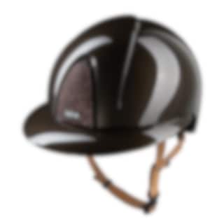 KEP Smart Nova Polo Star är en modern ridhjälm som kombinerar hög säkerhet, överlägsen komfort och italiensk kvalitet. Den glanisga bruna finishen, tillsammans med den glittrande fronten och KEP-logotypen baktill i glitter, skapar en exklusiv och stilfull look. Det beiga hakbandet kompletterar designen med en sofistikerad kontrast.