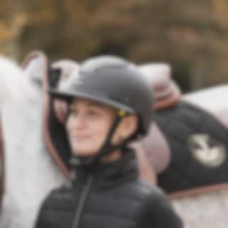 Adele är en lätt och bekväm ridhjälm med en vikt på endast 590 gram (+/- 30 g), vilket gör den behaglig att bära även under långa ridpass. Det smidiga rattsystemet baktill möjliggör enkel storleksjustering för en individuell och säker passform, medan det justerbara hakbandet ger extra komfort. Hjälmen är dessutom utrustad med ett stabilt 4-punktspänne som säkerställer att den sitter stadigt på plats under hela ritten.