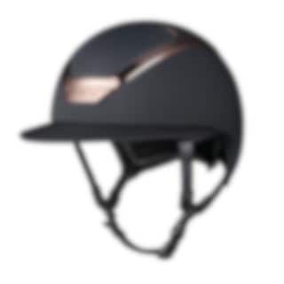 Klassisk ridhjälm med solskärm i matt finish, denna ridhjälm är en riktig dröm med en yta i svart och detaljer i roséguld.