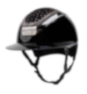 Ridhjälm med solskärm i högblank finish, hjälmens top IN-OUT är designad med äkta Swarovskikristaller