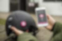 - Knappen fäster du på en valfri hjälm med medföljande tejp. Tejpet kan fästas på alla olika underlag som man har på sin hjälm. Knappen har en diameter på 3 cm och dryga 1 cm tjock. Sensor-knappen ska fästat bakom örat på bakre delen av hjälmen.