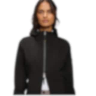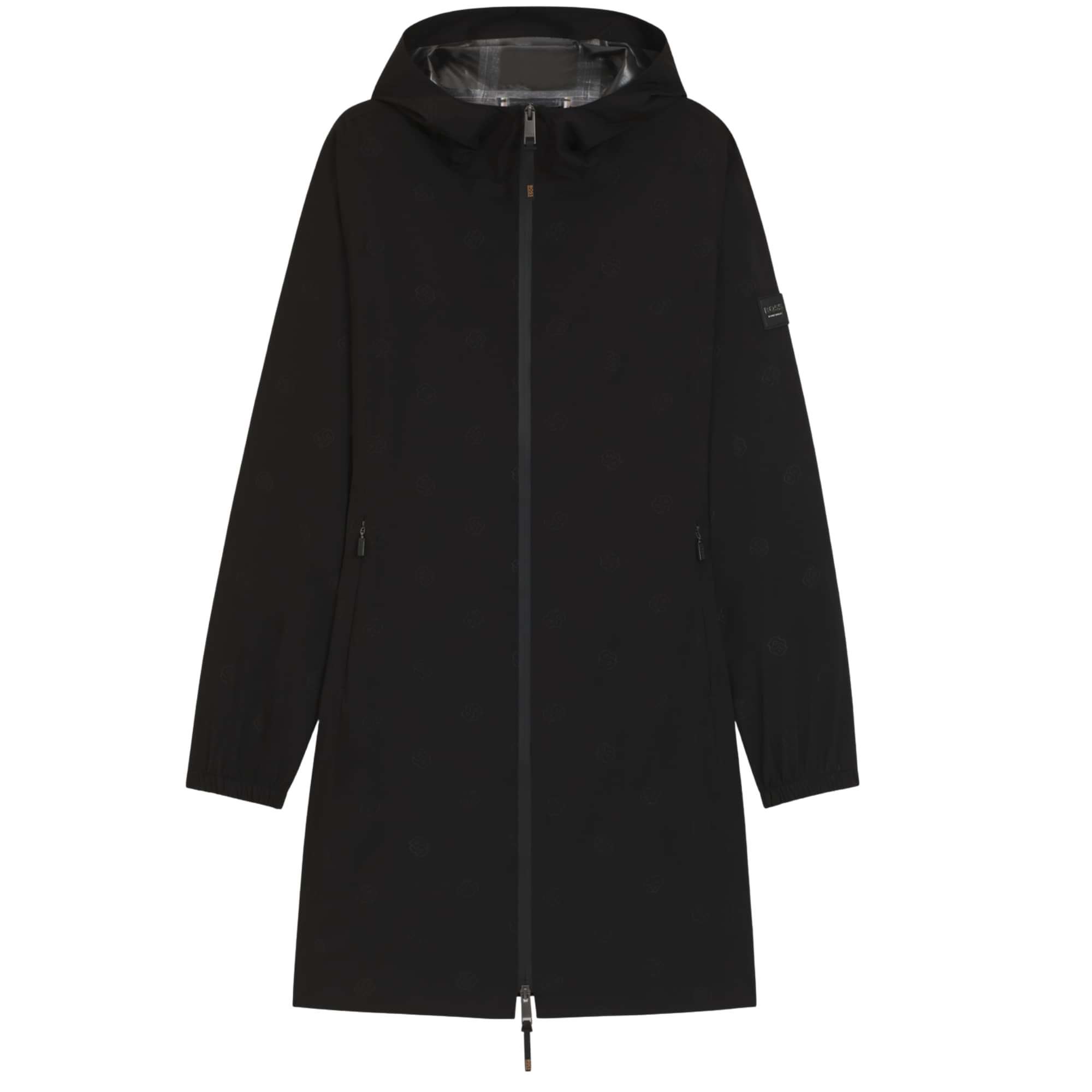 Lara regnjacka är utrustad med två dragkedjor baktill som kan öppnas upp till höfterna, vilket gör det möjligt att rida med jackan. Kappan är dessutom ton-i-ton-mönstrad med Double B-printet över hela plagget.