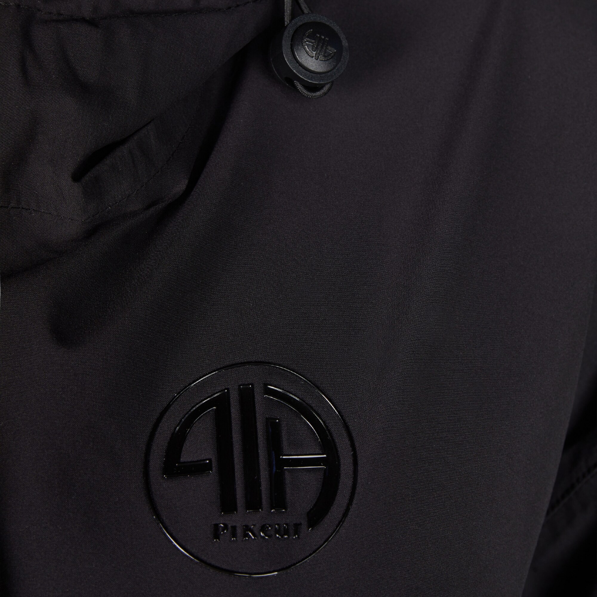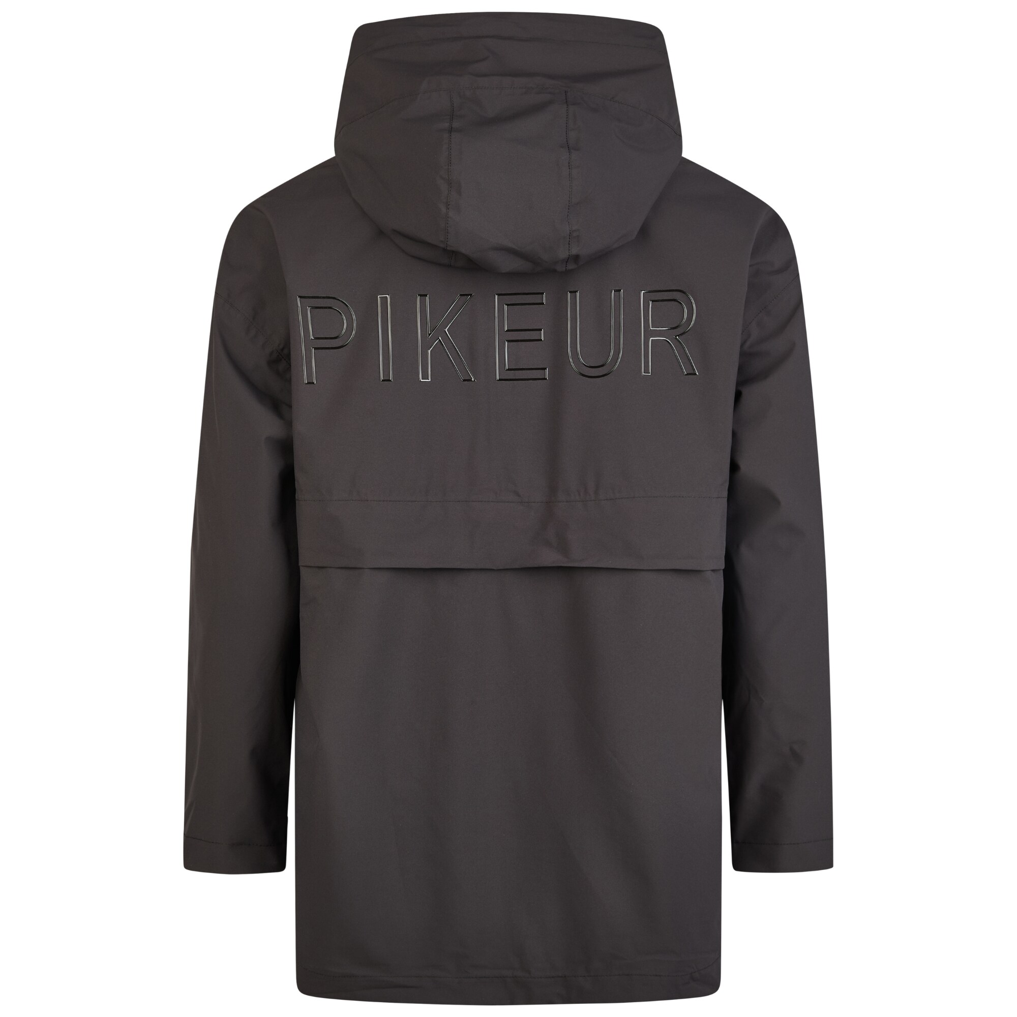Huvan är justerbar med dragsko och stopper samt utrustad med MAGNET CLICK-fäste som håller luvan på plats mot ryggen när den inte används. Designen är avskalad med blankt Pikeurtryck på ryggen och silikontryck på bröstet.