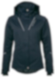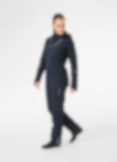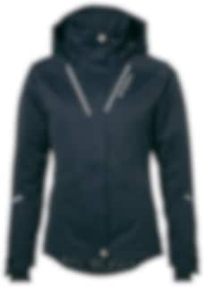 Fickor: Två handfickor och en bröstficka, alla med YKK-dragkedjor, samt en innerficka med dragkedja och genomgång för hörlurar. Asymmetriskt formad och justerbar bottenkant som är anpassad för ridning, vilket ger extra skydd och komfort i sadeln.