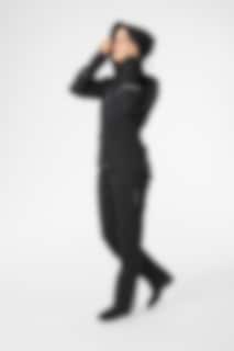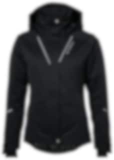 Fickor: Två handfickor och en bröstficka, alla med YKK-dragkedjor, samt en innerficka med dragkedja och genomgång för hörlurar. Asymmetriskt formad och justerbar bottenkant som är anpassad för ridning, vilket ger extra skydd och komfort i sadeln.