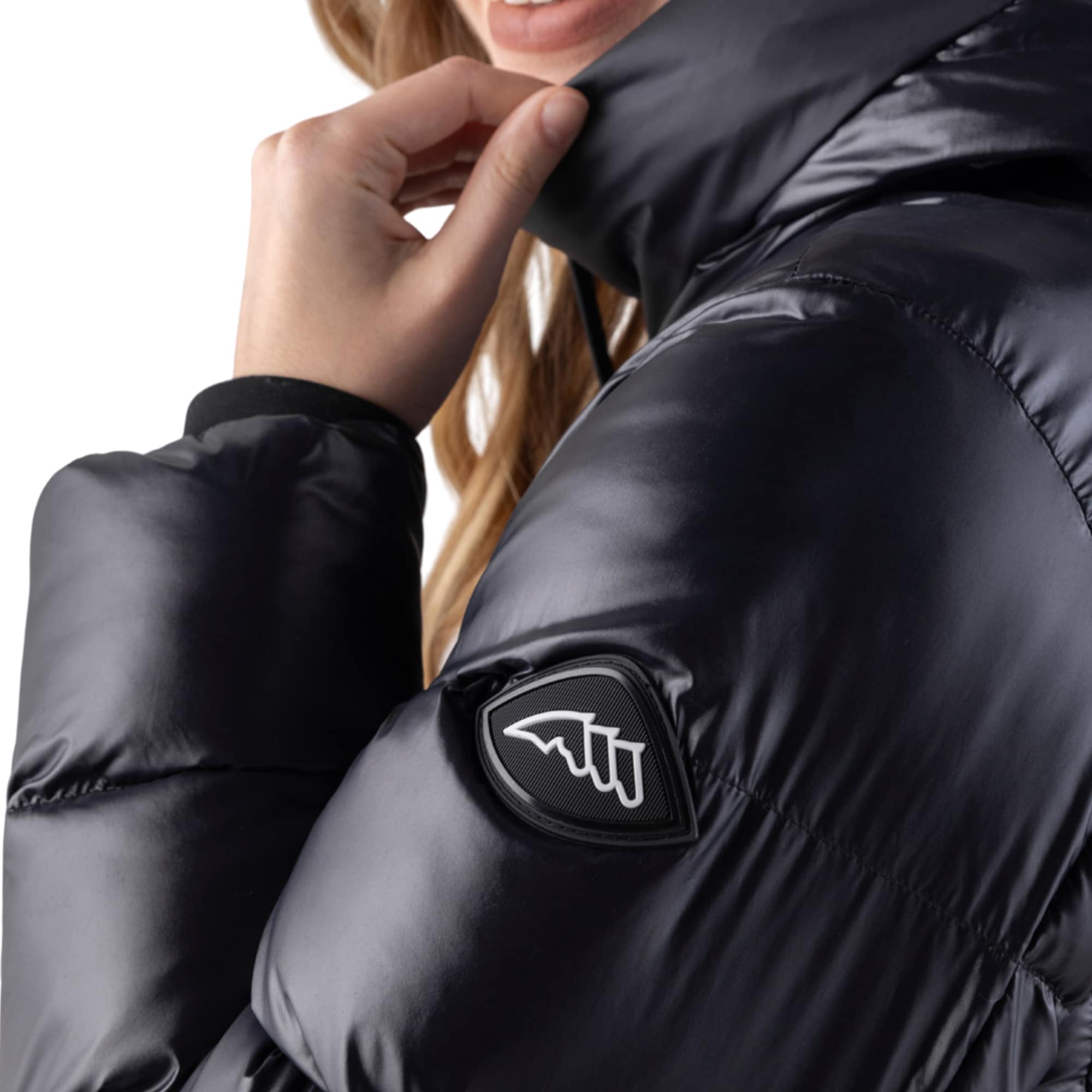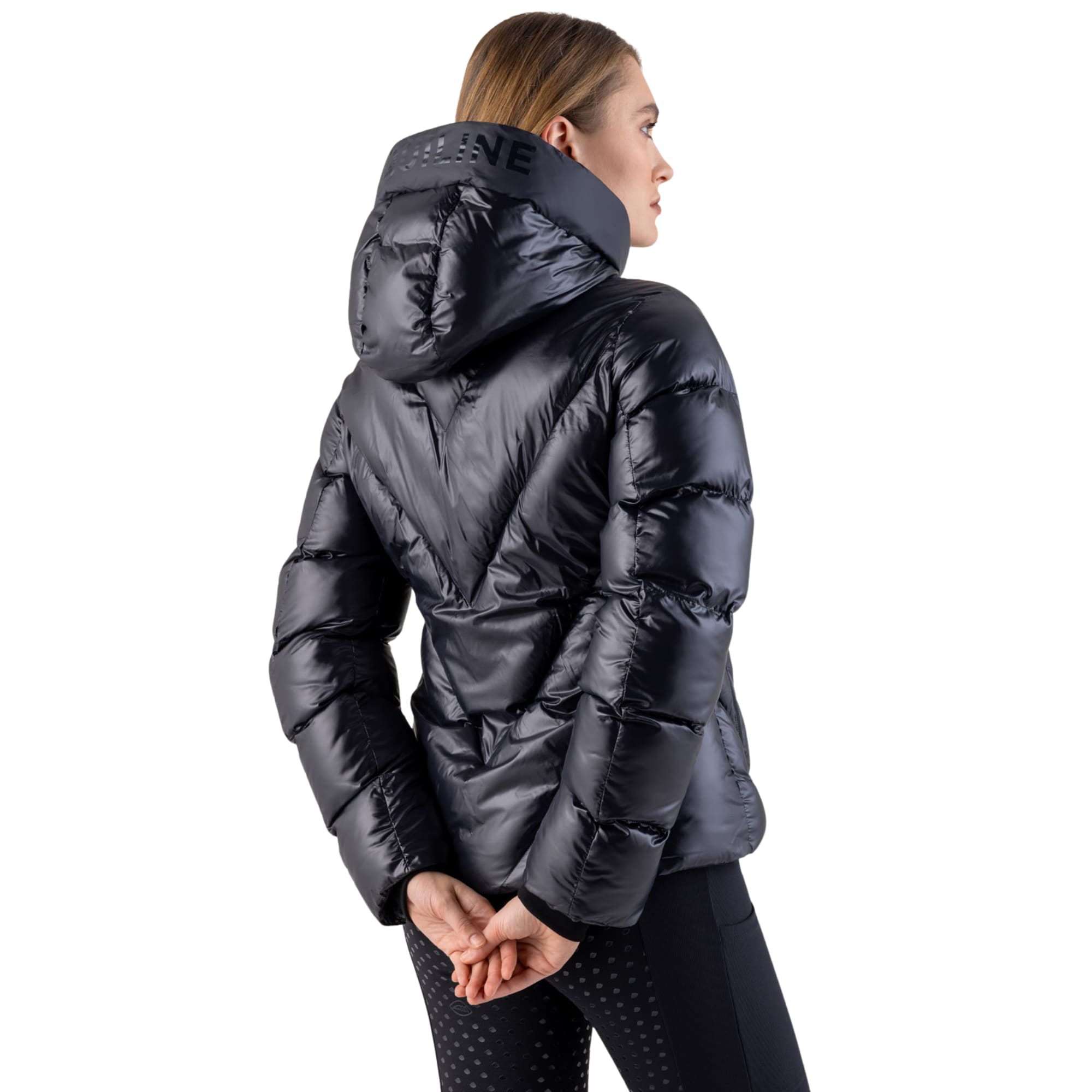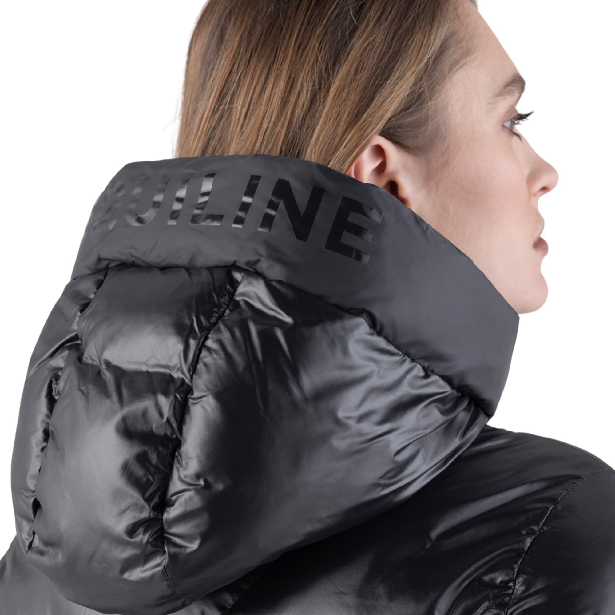 Equiline Coolbomb Glossy är en vadderad damjacka i svart, designad för komfort och funktion under kalla dagar. Jackan är vadderad med Eco-Duvet, tillverkad av återvunna PET-flaskor, och erbjuder värme samtidigt som den är miljövänlig.